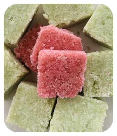 Made with: Coconut, Sugar, Spices, Edible food colouring